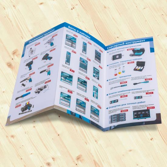 Наиболее распространены буклеты, имеющие 1-2 фальца и 4-6 полос, соответственно.